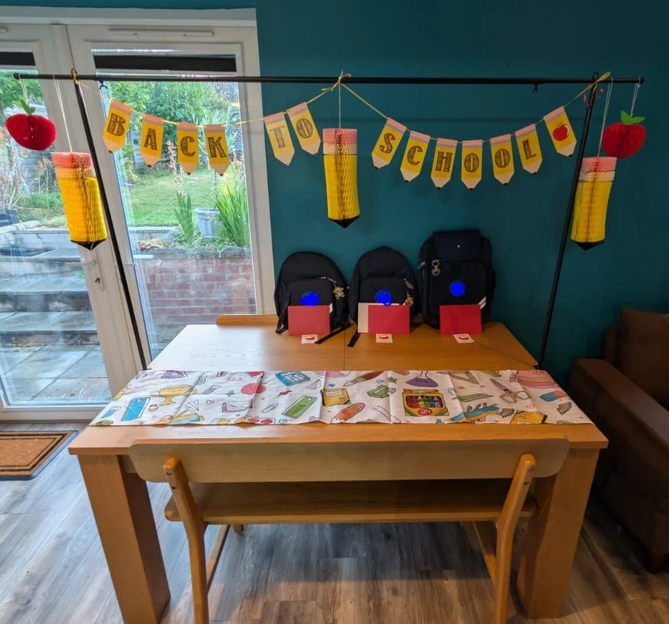This morning I decorated the table to get them excited for the new school year. It’s my youngest child’s first ever day of school and I just thought, why not make it special for all of them? It made the first day of school a bit more exciting and they were very excited about their new keyrings on their bags!